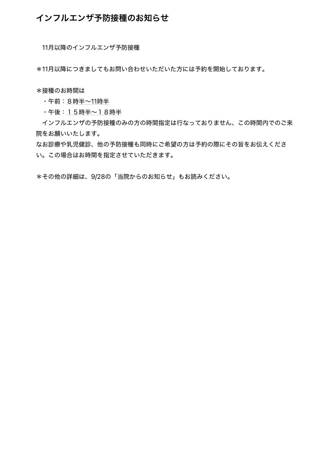 *接種料金は昨年同様3300円/回(税込)です。なお昨年からお鼻に噴霧するワクチンが国内で可能となりました。こちらは1回のみの接種で8500円(税込)です。接種に興味をお持ちの方は日本小児科学会の文章をお載せしますのでお読みになってみてください。